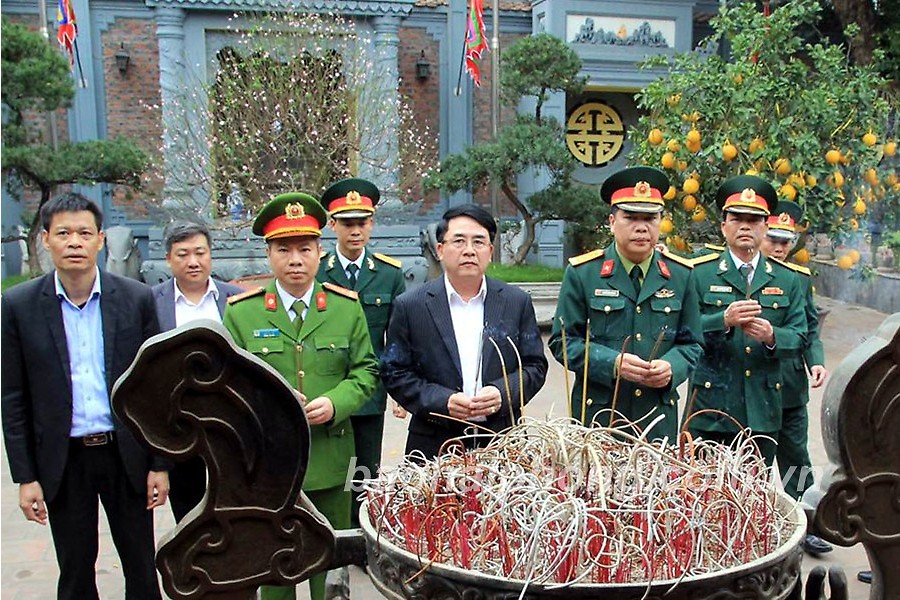 Trước đó, đồng chí Lê Khắc Nam, Phó chủ tịch UBND thành phố và đoàn đến thắp hương tại Đền Nghè, tượng đài Nữ tướng Lê Chân.