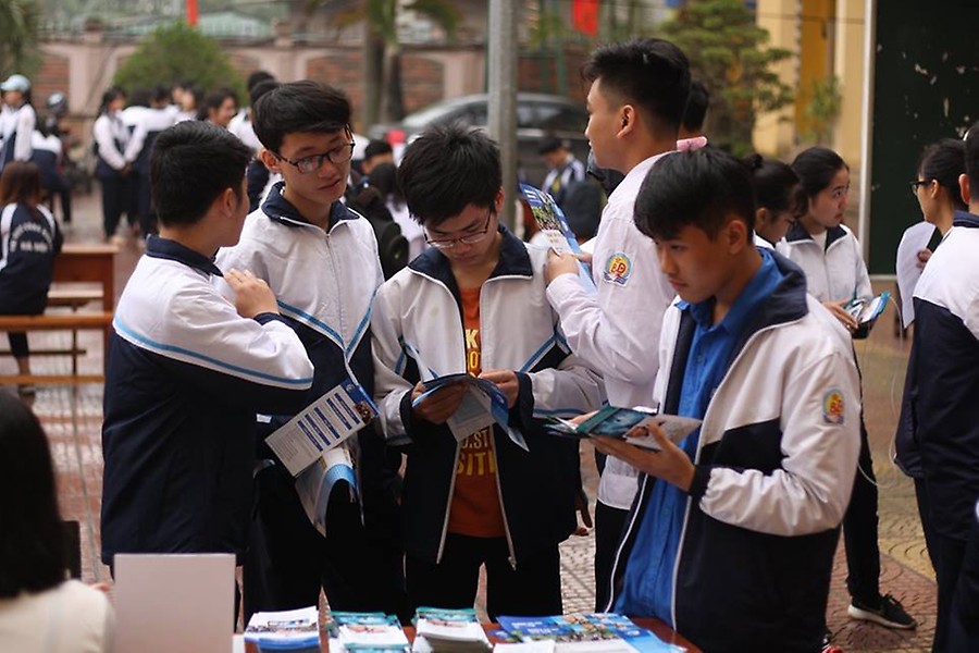 Học sinh lớp 12, Trường THPT Trần Hưng Đạo (huyện Thủy Nguyên) chia sẻ thắc mắc, khó khăn trước kỳ thi THPT Quốc gia năm 2018. Ảnh MINH PHƯƠNG