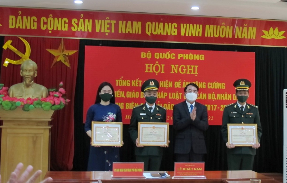 Tại Hội nghị, đại diện lãnh đạo Bộ Quốc phòng trao Huân chương Lao động hạng Nhì của Chủ tịch nước tặng Bộ Tư lệnh Bộ đội Biên phòng và Trung tướng Lê Đức Thái, Tư lệnh Bộ tư lệnh Bộ đội Biên phòng; trao Bằng khen của Thủ tướng Chính phủ tặng 1 tập thể, 3 cá nhân; trao Bằng khen của Bộ trưởng Bộ Quốc phòng tặng 72 tập thể, 139 cá nhân của thành tích xuất sắc trong thực hiện Đề án (trong đó Hải Phòng có 1 tập thể, 3 cá nhân được nhận Bằng khen của Bộ trưởng Bộ Quốc phòng).