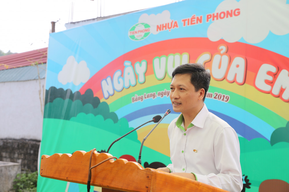 Phát biểu tại buổi lễ, ông Nguyễn Văn Thức, Phó Tổng giám đốc Công ty cổ phần Nhựa Thiếu niên Tiền Phong cho biết: Dịp 1-6 cũng là thời điểm đánh dấu kết thúc một năm học với nhiều nỗ lực của các thầy cô và các em học sinh, Nhựa Tiền Phong phối hợp với UBND huyện Quang Bình tổ chức chương trình “Ngày vui của em” với mong muốn dành tặng các em học sinh trường mầm non và tiểu học thôn Thượng, xã Bằng Lang ngày Tết Thiếu nhi tràn đầy niềm vui và hạnh phúc cũng là bắt đầu một mùa hè sôi động và bổ ích.