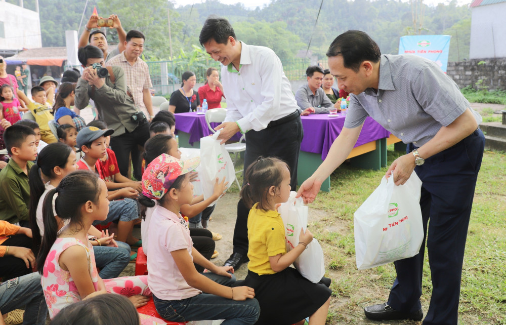 Thay mặt lãnh đạo Cty cổ phần nhựa Thiếu niên Tiền Phong, ông Nguyễn Văn Thức đã trao trên 242 suất quà tặng các em học sinh mầm non, tiểu học điểm trường thôn Thượng xã Bằng La, huyện Quang Bình và tặng 20 suất học bổng cho các em học sinh có hoàn cảnh khó khăn trên địa bàn xã. Nhân dịp này, ông Trần Đức Quý và đại diện Sở Giáo dục đào tạo tỉnh Hà Giang cũng trao những phần quà tặng cô trò điểm trường mầm non, tiểu học thôn Thượng xã Bằng Lang.