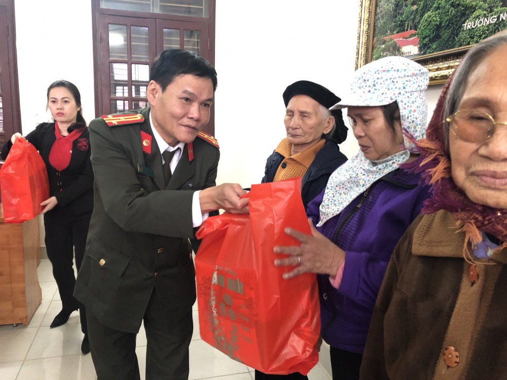 Tại trụ sở UBND xã, lãnh đạo hai cơ quan đã trao 10 suất quà tới các hộ nghèo ở địa phương, góp phần để các hộ dân đón tết ấm áp, vui tươi.