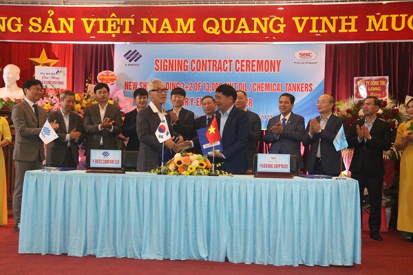 Chiều 19/12, công ty đóng tàu Phà Rừng tổ chức Lễ ký hợp đồng đóng mới 3+2 tàu chở dầu/hóa chất trọng tải 13.000 tấn xuất khẩu sang Hàn Quốc. Tham dự buổi lễ có đại diện