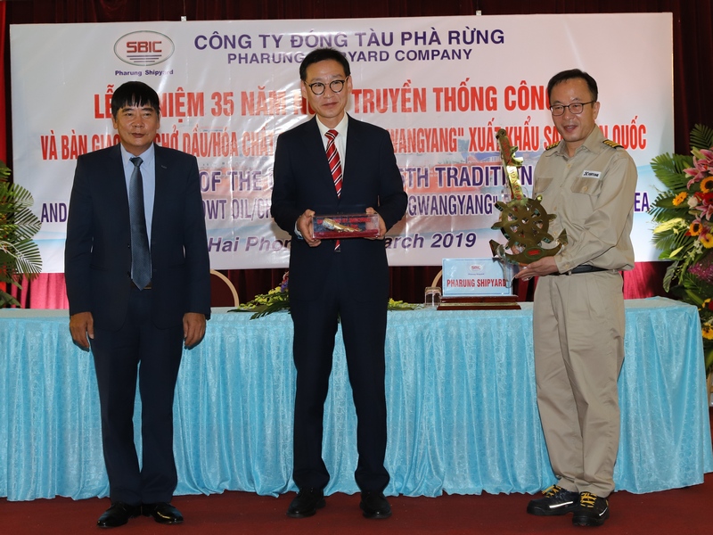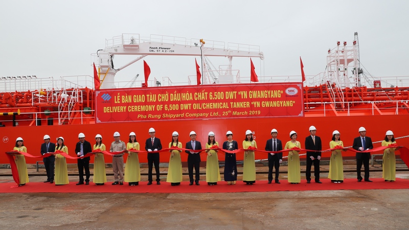 Sáng 25-3, Công ty Đóng tàu Phà Rừng tổ chức lễ kỷ niệm 35 năm ngày truyền thống công ty (25-3-1984 * 25-3-2019) và bàn giao tàu chở dầu/ hóa chất trọng tải 6.500 tấn, ký hiệu vỏ BS03 mang tên “YN GWANGYANG” xuất khẩu sang Hàn Quốc.