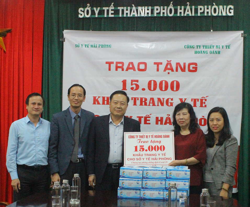 Chiều 2-3, Công ty thiết bị y tế Hoàng Oánh (Kỳ Đồng, Hồng Bàng) tổ chức trao 15.000 chiếc khẩu trang y tế tặng Sở Y tế Hải Phòng. Dự buổi trao tặng có Phó Giám đốc Sở Y tế thành phố Nguyễn Tiến Sơn cùng lãnh đạo các phòng ban của sở.