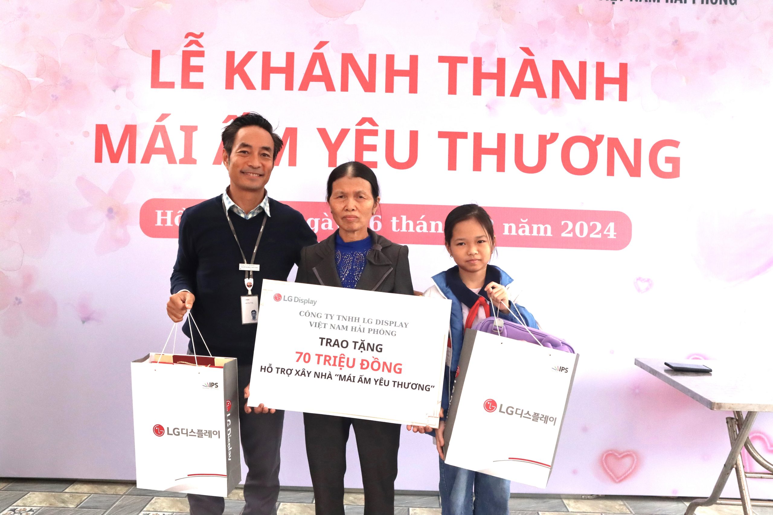 Bà Lưu Thị Bấm (65 tuổi) chia sẻ: “Bà cảm thấy vui mừng, hạnh phúc và rất cảm ơn công ty LG Display Việt Nam Hải Phòng đã tài trợ cho 3 bà cháu một căn nhà để trú mưa trú nắng và bớt đi nỗi lo khi mùa mưa bão về”.