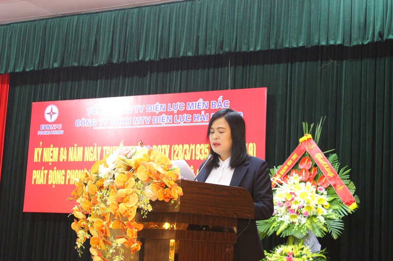 Bà Trần Thị Thanh Giang, Phó Bí thư thường trực Đảng ủy Công ty TNHH MTV Điện lực Hải Phòng phát biểu tại hội nghị