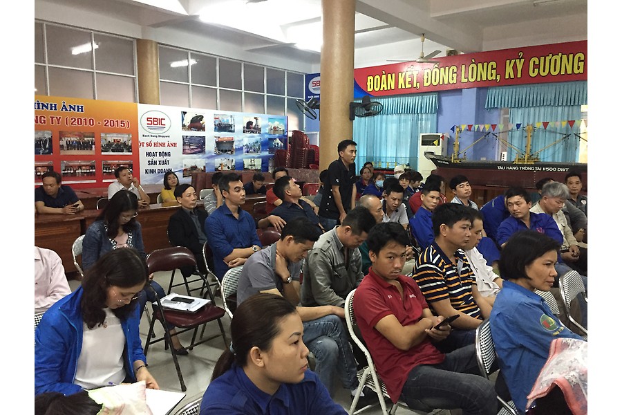 Sáng 29-3, một ngày sau khi hàng trăm người lao động Công ty TNHH MTV đóng tàu Bạch Đằng (Tổng công ty Công nghiệp Tàu thủy Việt Nam) trên địa bàn phường Hạ Lý, quận Hồng Bàng ngừng việc tập thể, ban lãnh đạo, công đoàn doanh nghiệp tổ chức đối thoại với người lao động, giải đáp một số vấn đề liên quan đến quyền lợi hợp pháp, chính đáng của người lao động.
