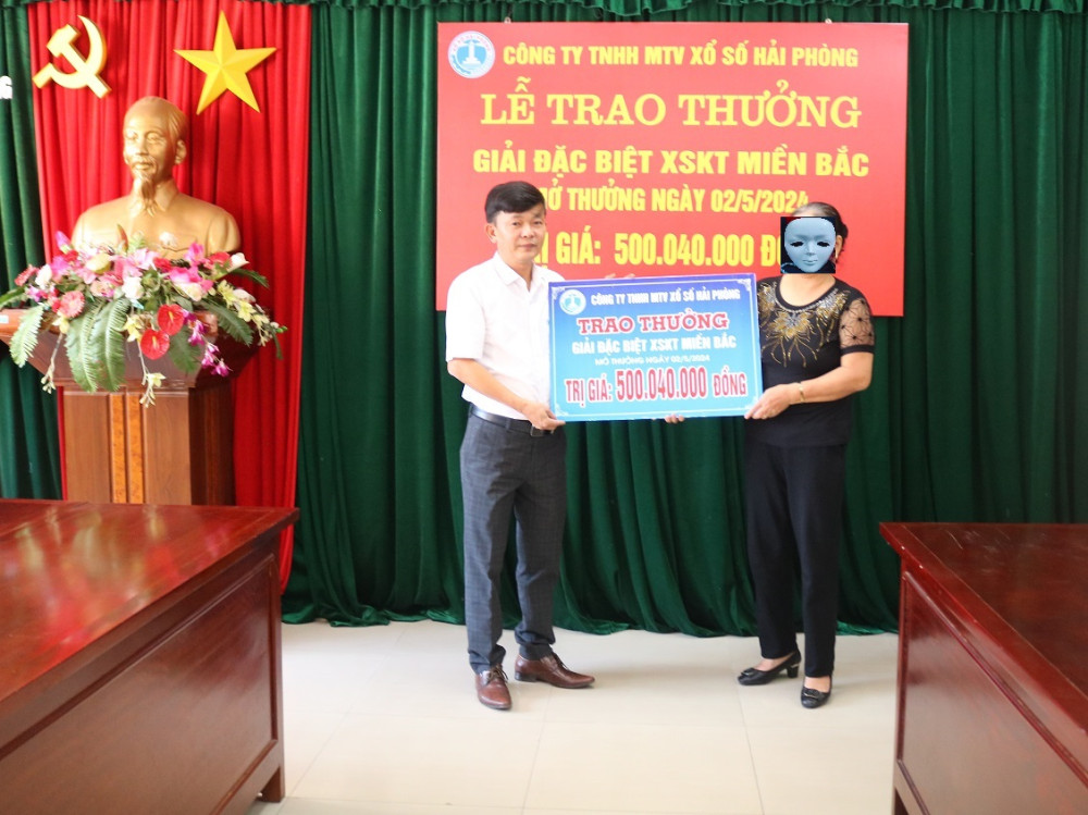 Chiều 10/5, Công ty TNHH MTV Xổ số Hải Phòng tổ chức Lễ trao thưởng giải Đặc biệt Xổ số Kiến thiết miền Bắc mở thưởng ngày 2/5/2024 cho khách hành may mắn trúng 1 vé giải Đặc biệt giá trị giải thưởng là 500.040.000 đồng.
