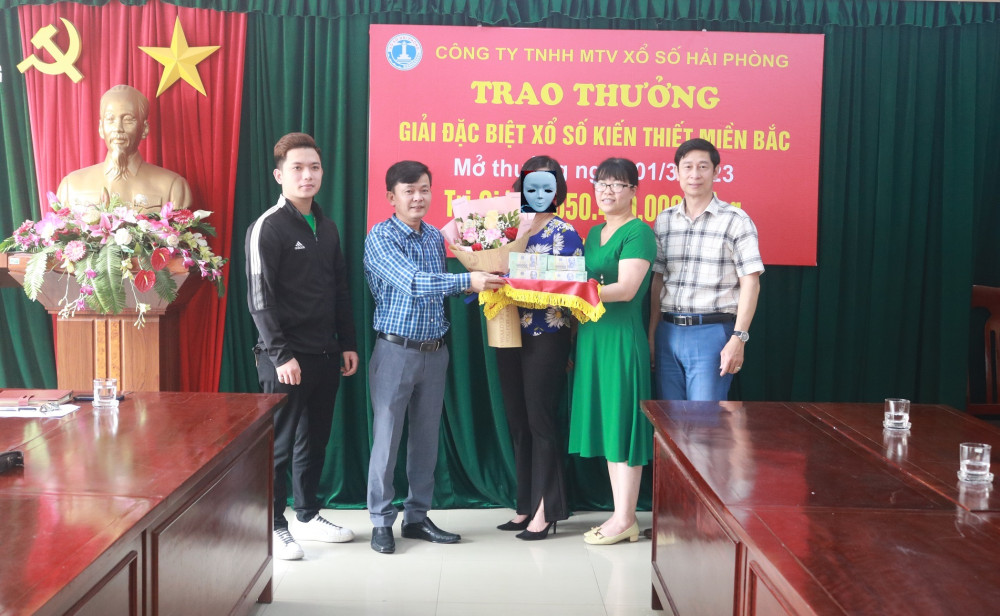 Sáng 9/3, Công ty TNHH MTV Xổ số Hải Phòng tổ chức lễ trao thưởng giải Đặc biệt Xổ số Kiến thiết miền Bắc mở thưởng ngày 1/3/2023 cho 2 khách hàng may mắn trúng thưởng với tổng trị giá 2.650.440.000 đồng. Dự lễ trao thưởng có ông Trịnh Quốc Tuấn, Phó Tổng Giám đốc Công ty và đại diện gia đình khách hàng may mắn trúng thưởng.
