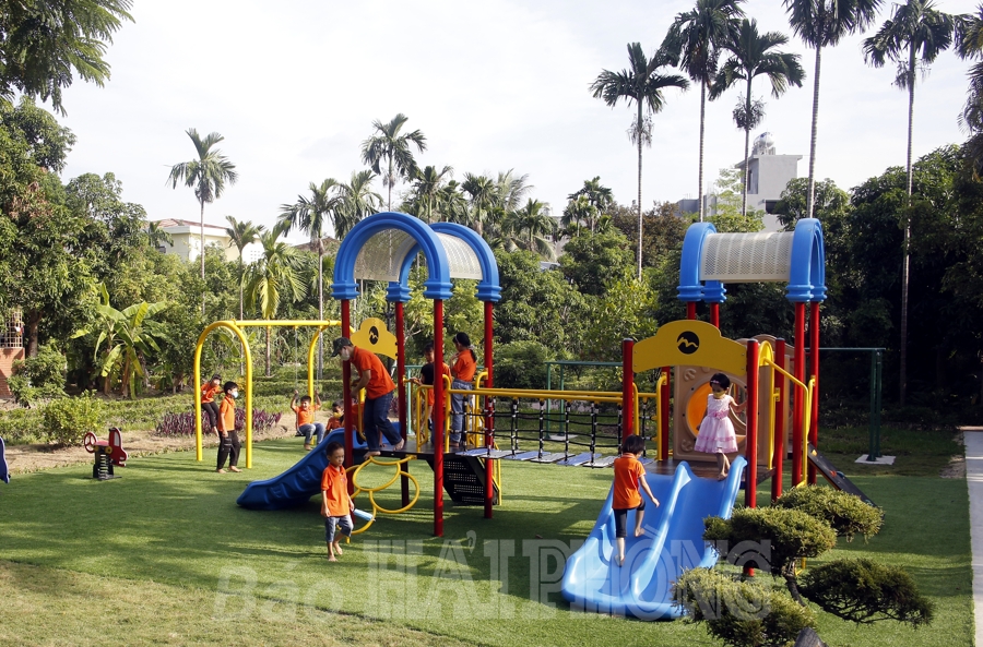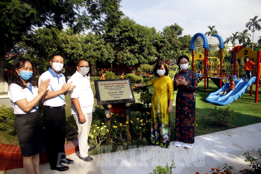 Chiều 8/10, Công ty TNHH VSIP Hải Phòng tổ chức lễ khánh thành công trình cải tạo và nâng cấp sân chơi thiếu nhi tặng các em Làng nuôi dạy trẻ mồ côi Hoa Phượng. Dự chương trình có lãnh đạo Sở Lao động-Thương binh và Xã hội thành phố.