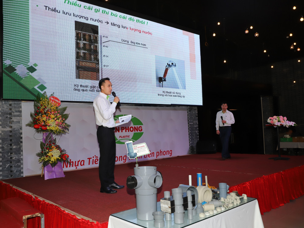 Tại hội thảo, các đại lý, thợ kỹ thuật được giới thiệu và trải nghiệm thực tế những sản phẩm mang tính ưu việt của Nhựa Tiền Phong như: Ống PPR 2 lớp chịu nhiệt (lên đến 90 độ) và chống nắng, có thể lắp đặt đồng bộ hệ thống ống nước trong nhà và ngoài trời; Hệ thống thông sàn – thuận tiện cho việc lắp đặt hệ thống thoát nước, đảm bảo tính thẩm mỹ cao; Nối kép 90 độ – giúp lắp đặt bình nóng lạnh chính xác và nhanh chóng; Hố ga Nhựa Tiền Phong – sản phẩm hố ga thế hệ mới giúp tiết kiệm chi phí, thời gian thi công, dễ dàng làm sạch và không rò rỉ, không gây mùi khó chịu ra môi trường sống…