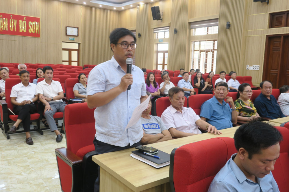 Nhân dịp này, cử tri quận Đồ Sơn mong muốn HĐND thành phố quan tâm triển khai các dự án trên địa bàn quận đúng tiến độ, tạo lòng tin cho Nhân dân, trong đó cần đặc biệt quan tâm đến Dự án đầu tư xây dựng tu bổ, tôn tạo quần thể di tích Bến K15 vì đây là niềm mong mỏi không chỉ của Nhân dân địa phương mà còn của thế hệ cha ông, những người đã trực tiếp tham gia cách mạng tại nơi này. Đại biểu cử tri quận cho biết các phường (quận Đồ Sơn) đã có đề xuất thành lập Hội Nạn nhân chất độc da cam cấp phường, mong các cấp, các ngành thành phố quan tâm xem xét, thông qua cơ chế để tạo động lực cho Hội hoạt động hiệu quả, góp phần xoa dịu nỗi đau cho những nạn nhân da cam trên địa bàn.