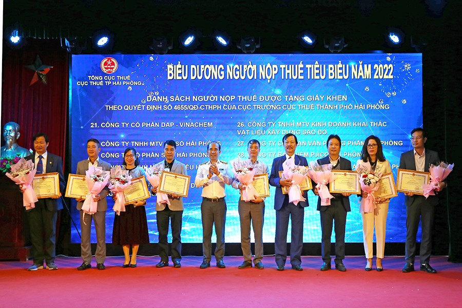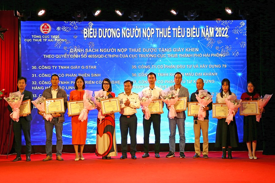 Hội nghị tuyên dương các doanh nghiệp chấp hành tốt chính sách pháp luật thuế năm 2022, gồm: 06 doanh nghiệp được Tổng Cục Trưởng Tổng Cục Thuế tặng Giấy khen; 38 doanh nghiệp được Cục trưởng Cục Thuế thành phố tặng Giấy khen.