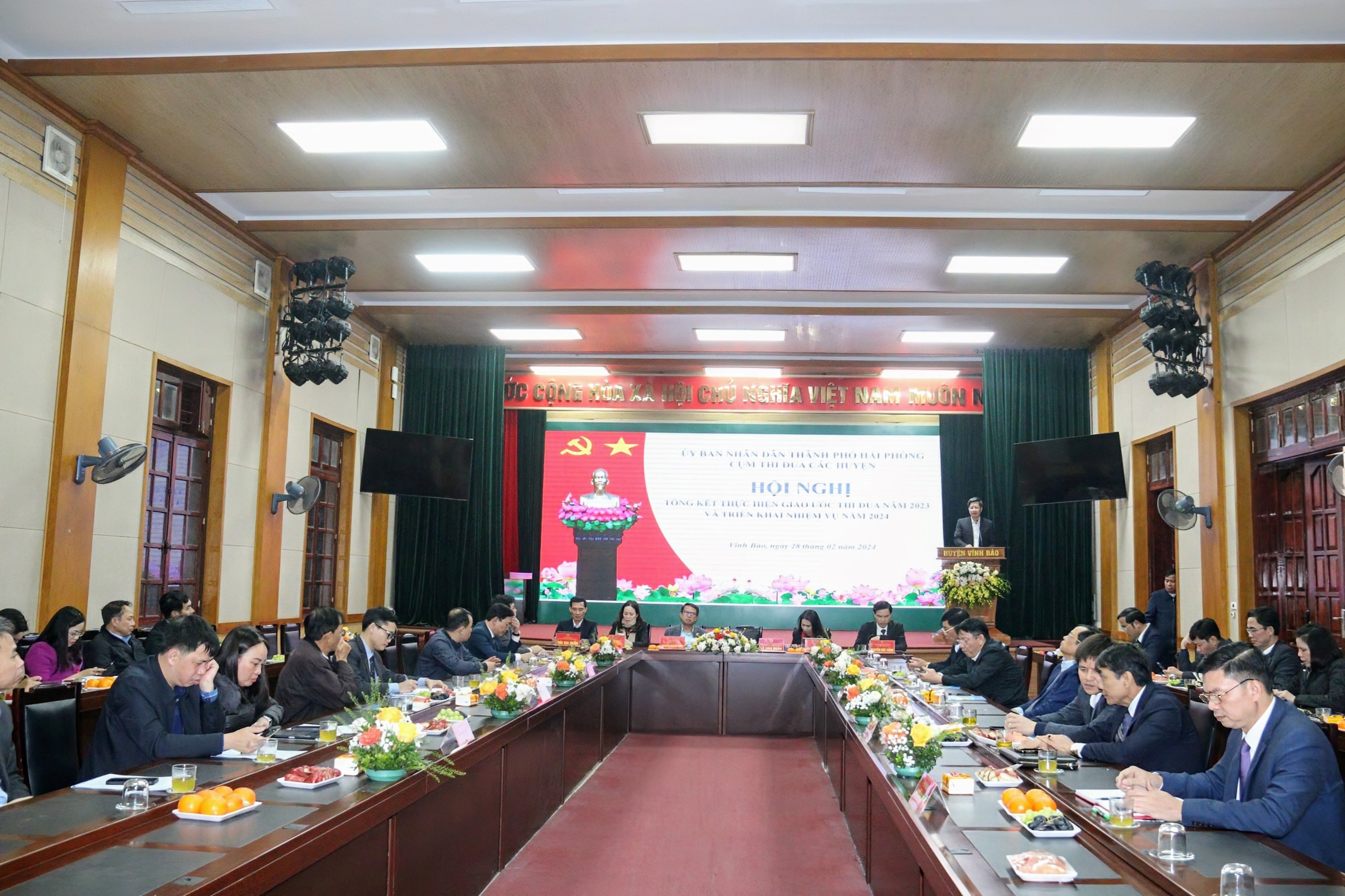 Phát biểu tại Hội nghị, Phó Chủ tịch Thường trực UBND thành phố Lê Anh Quân ghi nhận và đánh giá cao những kết quả đã đạt được của Cụm năm 2023. Đồng thời, đề nghị Cụm thi đua Khối huyện cần quyết tâm đẩy mạnh hơn nữa phong trào thi đua yêu nước và công tác thi đua khen thưởng đáp ứng yêu cầu nhiệm vụ trong tình hình mới, tiếp tục chủ động khắc phục khó khăn, tận dụng tốt thời cơ để thúc đẩy phát triển kinh tế-xã hội. Tiếp tục lãnh đạo, chỉ đạo thực hiện tốt phong trào thi đua yêu nước một cách sâu rộng. Đưa công tác thi đua khen thưởng trở thành một trong những nhiệm vụ quan trọng của địa phương. Cần có biện pháp đẩy mạnh hơn nữa các hoạt động thi đua chung trong Khối. Trong đó, chú trọng thực hiện phong trào thi đua trong xây nông thôn mới, hoàn thành xây dựng các xã nông thôn mới kiểu mẫu, nông thôn mới nâng cao theo kế hoạch của UBND thành phố; thực hiện chủ trương sáp nhập các đơn vị hành chính cấp xã giai đoạn 2023-2025; thực hiện tốt lộ trình thành lập thành phố thuộc thành phố Hải Phòng tại huyện Thủy Nguyên; thành lập đơn vị hành chính quận tại huyện An Dương…
