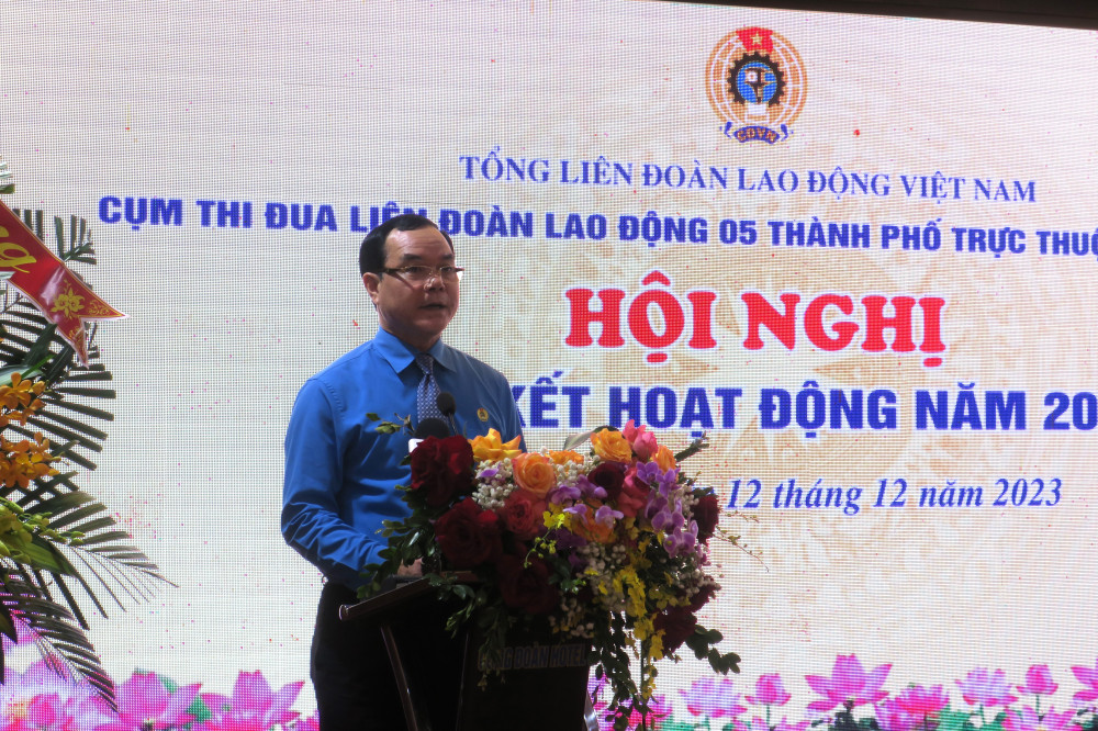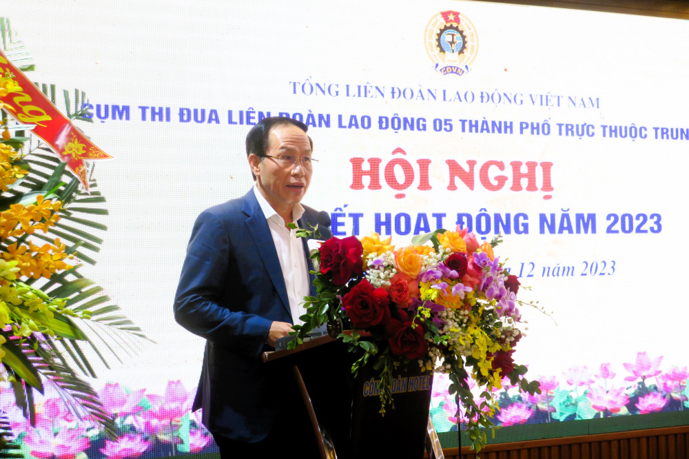 Chiều 12/12, Cụm thi đua Liên đoàn Lao động (LĐLĐ) 5 thành phố trực thuộc Trung ương tổ chức Hội nghị Tổng kết hoạt động năm 2023.