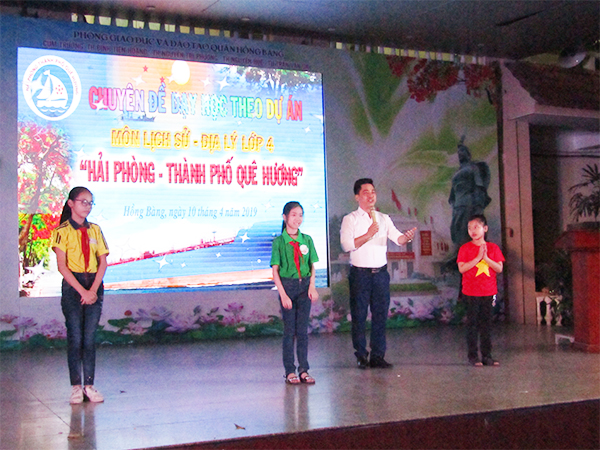 Sáng 10-4, tại trường tiểu học Đinh Tiên Hoàng, Phòng Giáo dục và đào tạo quận Hồng Bàng tổ chức Chương trình chuyên đề dạy học theo dự án môn Lịch sử – Địa lý lớp 4 “Hải Phòng – Thành phố quê hương”. Đến dự có Phó Giám đốc Sở GD-ĐT Đỗ Thị Hòa, lãnh đạo Phòng GD-ĐT quận Hồng Bàng, cô trò 4 trường tiểu học trên địa bàn quận.