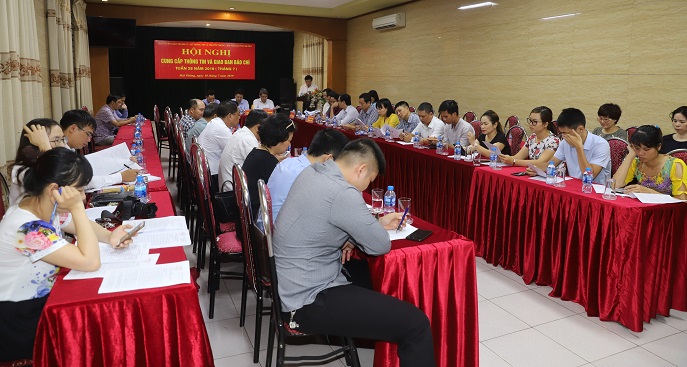 Chiều 10-7, Ban tuyên giáo Thành ủy phối hợp với Sở TT&TT và Hội nhà báo thành phố, tổ chức hội nghị cung cấp thông tin và giao ban báo chí tuần thứ 28 năm 2019. Các đồng chí: Đào Văn Hoàn – Phó Trưởng ban tuyên giáo Thành ủy, Lương Hải Âu – Giám đốc Sở thông tin và truyền thông, Nguyễn Trí Tín – Chủ tịch Hội nhà báo Hải Phòng đồng chủ trì hội nghị.