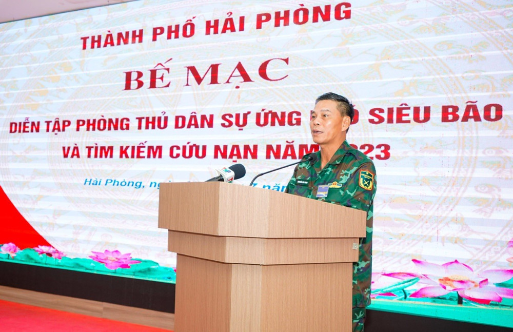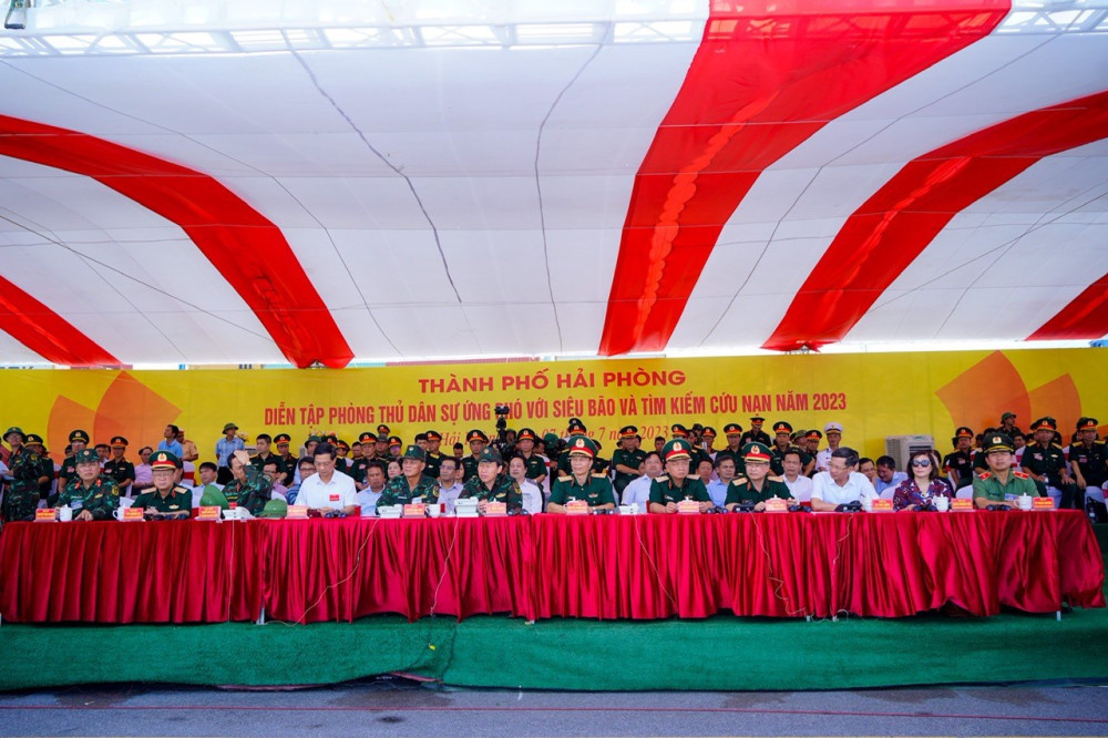 Phát biểu chỉ đạo tại Bế mạc Diễn tập Phòng thủ thành phố Hải Phòng năm 2023, các đồng chí: Trung tướng Nguyễn Trọng Bình, Phó Tổng Tham mưu trưởng Quân đội nhân dân Việt Nam và Trung tướng Nguyễn Quang Ngọc Tư lệnh Quân khu Ba ghi nhận, biểu dương những cố gắng nỗ lực của các thành viên Ban Chỉ đạo, Ban Tổ chức diễn tập, cùng các Sở, ban, ngành, địa phương, các lực lượng vũ trang và các đơn vị có liên quan đã tập trung cao độ cho công tác chuẩn bị và thực hành diễn tập. Bên cạnh những kết quả đã đạt được, quá trình chuẩn bị và thực hành diễn tập vẫn còn có một số hạn chế, thiếu sót, các đồng chí đề nghị các Sở, ban, ngành, các địa phương, cơ quan, đơn vị nghiêm túc rút kinh nghiệm, tiếp tục bổ sung và hoàn chỉnh kế hoạch phòng thủ dân sự ứng phó với siêu bão và tìm kiếm cứu nạn. Thời gian tới yêu cầu đặt ra cho công tác phòng chống thiên tai và tìm kiếm cứu nạn sẽ ngày càng cấp thiết, do đó đề nghị Thành ủy, HĐND, UBND thành phố tiếp tục quan tâm, tiếp tục ưu tiên đầu tư nguồn lực cho công tác này, góp phần bảo đảm an ninh trật tự, bảo vệ các công trình của thành phố.