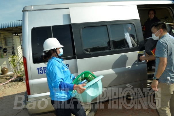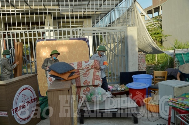 Đoàn viên quận Hải An hỗ trợ nhân dân di dời tài sản, đồ dùng cá nhân về nơi ở mới.