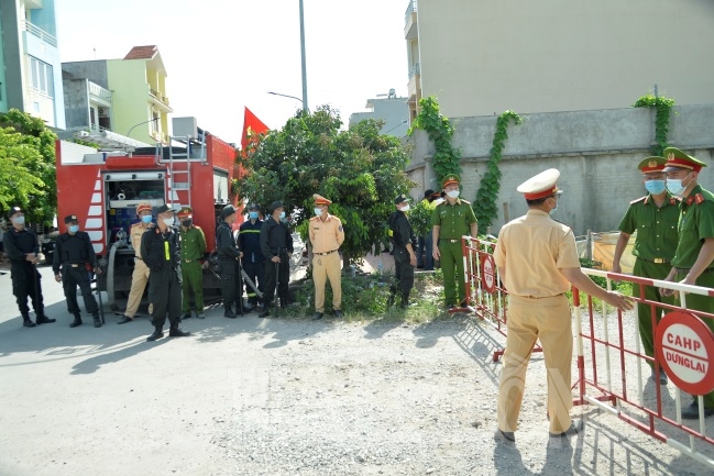 Cảnh sát PCCC và CHCN triển khai đội hình hỗ trợ lực lượng cưỡng chế.