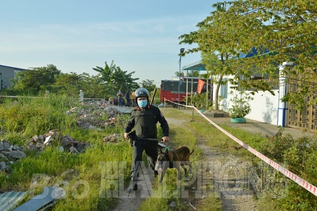 Công an thành phố huy động chó nghiệp vụ hỗ trợ công tác cưỡng chế.