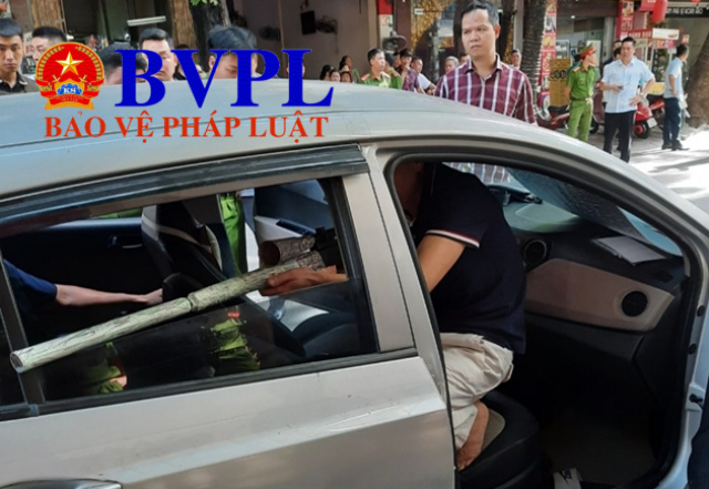 Tại buổi dựng lại hiện trường, nghi phạm đã thực hiện hành vi ngồi trên xe ô tô bắn ông Tô Thắng L. vào ngày 14/6.