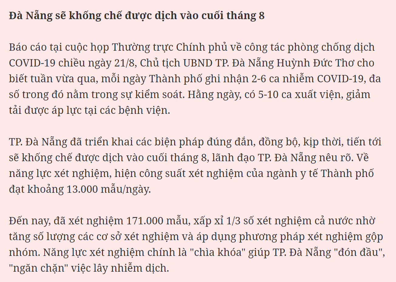 Đây được xem là một kết quả đáng khích lệ của ngành y tế và người dân Đà Nẵng trong thời điểm dịch bệnh COVID-19 diễn biến phức tạp.