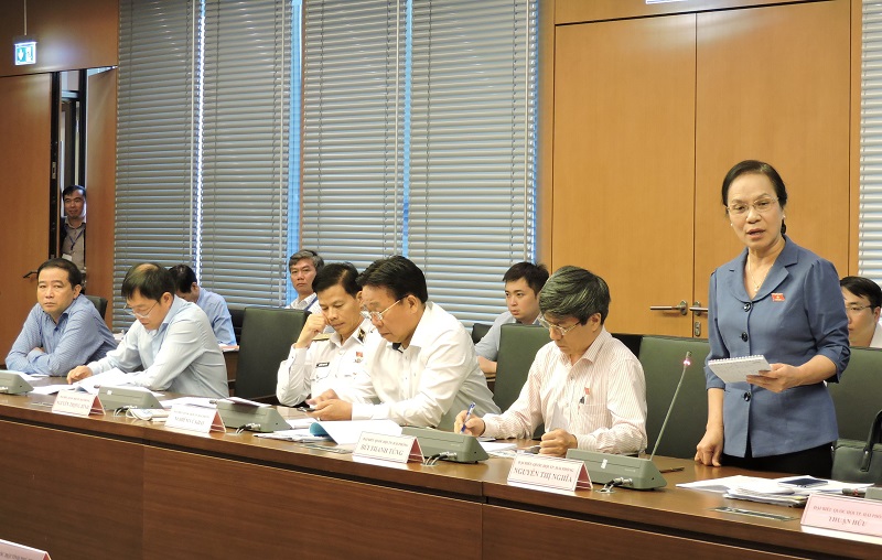 Đồng chí Nguyễn Thị Nghĩa, Phó bí thư thường trực Thành ủy, Trưởng Đoàn ĐBQH Hải Phòng phát biểu thảo luận tổ tại QH