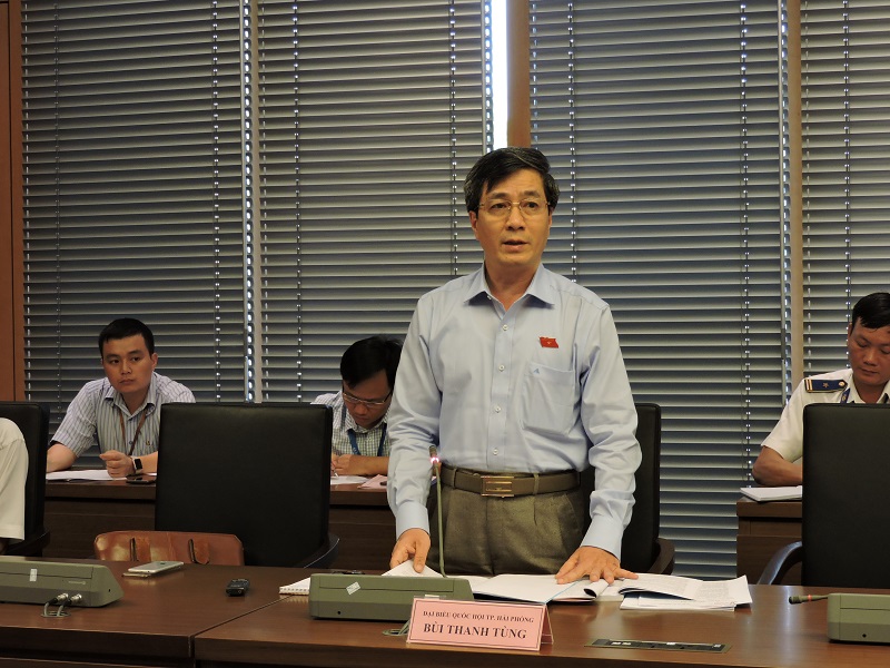 Phó trưởng Đoàn ĐBQH Hải Phòng Bùi Thanh Tùng góp ý thảo luận tổ tại Quốc hội