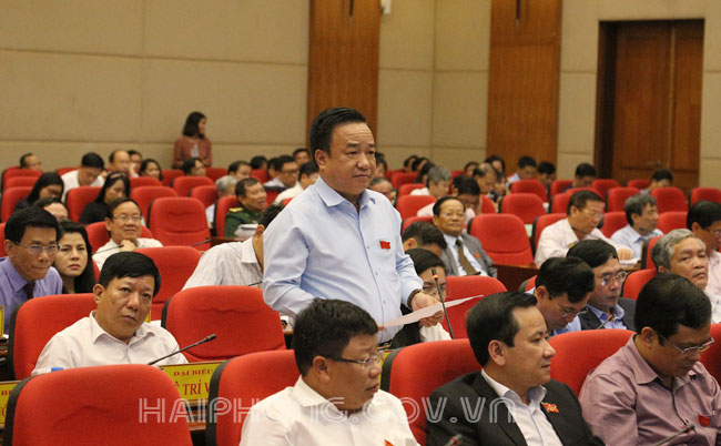 Các đại biểu HĐND thành phố chất vấn lãnh đạo Sở về các vấn đề: giải pháp nào để giải quyết được triệt để việc các hộ dân xã Hữu Bằng và xã Thuận Thiên, huyện Kiến Thụy có đất bị thu hồi để thực hiện dự án xây dựng đường cao tốc Hà Nội – Hải Phòng đã được cấp đất tái định cư song đến nay vẫn chưa được cấp Giấy chứng nhận quyền sử dụng đất. Các dự án lớn (trên 01 ha) đã được thành phố phê duyệt hoặc đồng ý chủ trương cho triển khai từ 01/01/2010 nhưng đến nay chưa thu tiền sử dụng đất, nguyên nhân, trách nhiệm, giải pháp khắc phục và tiến độ thực hiện trong thời gian tới. Các đại biểu cũng quan tâm đến số lượng mỏ cát được cấp phép khai thác, thu ngân sách từ khai thác cát, quản lý nguồn thu; kết quả thực hiện việc cấp phép xả thải trên địa bàn thành phố.