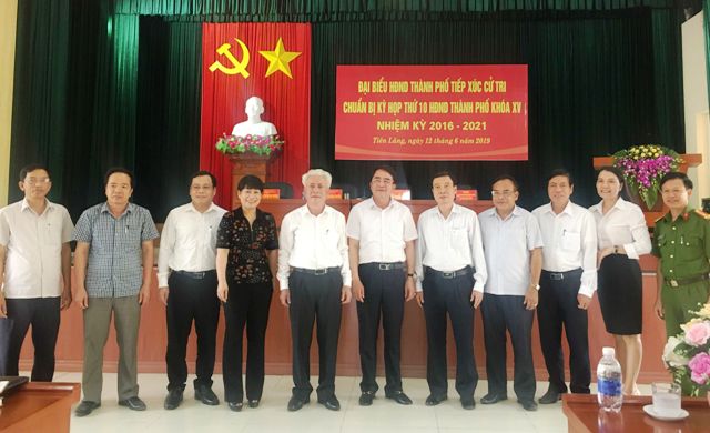 Cử tri huyện Tiên Lãng bày tỏ vui mừng, phấn khởi, tự hào với những kết quả thành phố đạt được thời gian qua và trong 6 tháng đầu năm 2019. Đồng thời nêu ý kiến đề nghị thành phố quan tâm sớm có cơ chế hỗ trợ các địa phương quy vùng sản xuất cây trồng phục vụ cung cấp nguồn nguyên liệu cho nhà máy chế biến rau, củ quả Haphofood; quan tâm chỉ đạo đẩy nhanh tiến độ một số dự án trọng điểm như tuyến đường bộ ven điển, đường phòng chống lụt bão và trục liên xã Bắc Hưng – Nam Hưng – Đông Hưng – Tây Hưng đoạn từ quán Cháy đi cống C4; 2 tuyến đường dẫn đi cầu Hàn, cầu Đăng đoạn qua địa bàn huyện, quan tâm bố trí nguồn vốn đầu tư nâng cấp tuyến đường 354, đoạn từ ngã ba đường Rồng đến ngã ba Đoàn Lập; xây cống Đồng Phiên, xã Hùng Thắng; kịp thời triển khai giải ngân hỗ trợ kinh phí phòng chống dịch tả lợn châu Phi cho các xã, thị trấn, cho bà con nông dân; hỗ trợ vật tư xi măng, gạch để xây mới, sửa chữa nhà ở đối với hộ gia đình người có công với cách mạng có khó khăn về nhà ở trên địa bàn; chủ động cung ứng chế phẩm sinh học nông nghiệp trước khi bước vào vụ sản xuất mới…