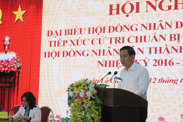 Phó Chủ tịch UBND thành phố Nguyễn Văn Thành tại buổi tiếp xúc cử tri quận Lê Chân