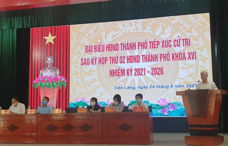 Sáng 24/8, tại Trung tâm Bồi dưỡng Chính trị huyện, Tổ đại biểu HĐND thành phố tổ chức tiếp xúc cử tri huyện Tiên Lãng sau kỳ họp thứ 2 HĐNĐ thành phố khóa XVI.