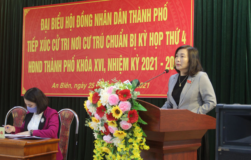 Tại buổi tiếp xúc, đồng chí Đào Khánh Hà, Trưởng Ban Tuyên giáo Thành ủy thông tin tới cử tri phường An Biên về nội dung, thời gian tiến hành Kỳ họp thứ 4, HĐND thành phố khóa XVI, nhiệm kỳ 2021-2026 và các nội dung quan trọng dự kiến sẽ được HĐND thành phố xem xét, quyết định và thông qua tại Kỳ họp thứ 4.