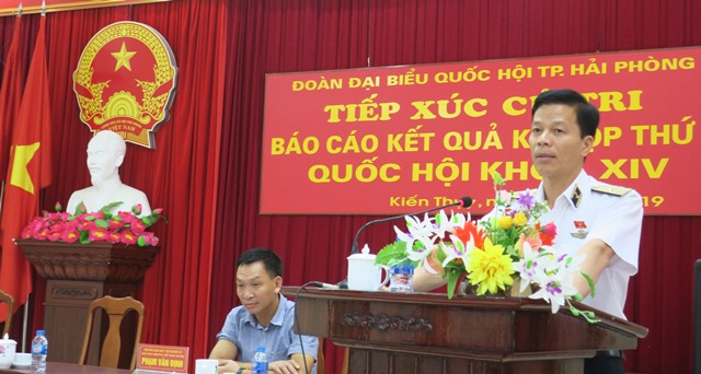*** Sáng 18/6, đồng chí Nguyễn Trọng Bình – Chuẩn đô đốc, Phó Tư lệnh kiêm Tham mưu trưởng Bộ tư lệnh Hải quân và đồng chí Mai Hồng Hải – Tổng Giám đốc Công ty TNHH MTV Xi măng Vicem Hải Phòng tiếp xúc cử tri huyện Kiến Thụy, báo cáo kết quả kỳ họp thứ 7, Quốc hội khóa XIV.