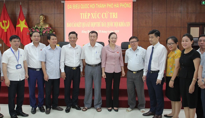 Ngày 18-6, đồng chí Nguyễn Thị Nghĩa – Phó bí thư thường trực Thành ủy, Trưởng đoàn đại biểu Quốc hội Hải Phòng cùng các đại biểu Quốc hội thành phố tiếp xúc cử tri quận Hồng Bàng và huyện An Lão thông báo kết quả Kỳ họp thứ 7, Quốc hội khóa 14.