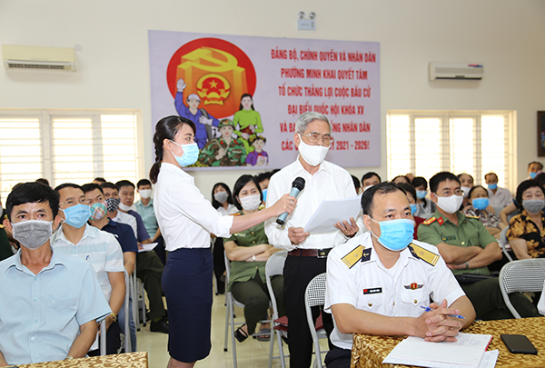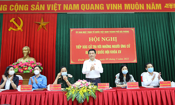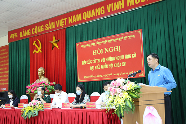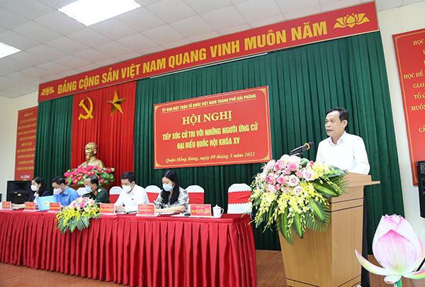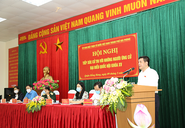 Chiều 9/5, tại trụ sở UBND phường Minh Khai quận Hồng Bàng, Ủy ban Mặt trận Tổ quốc (MTTQ) Việt Nam thành phố tổ chức Hội nghị tiếp xúc cử tri với người ứng cử đại biểu Quốc hội khóa XV.