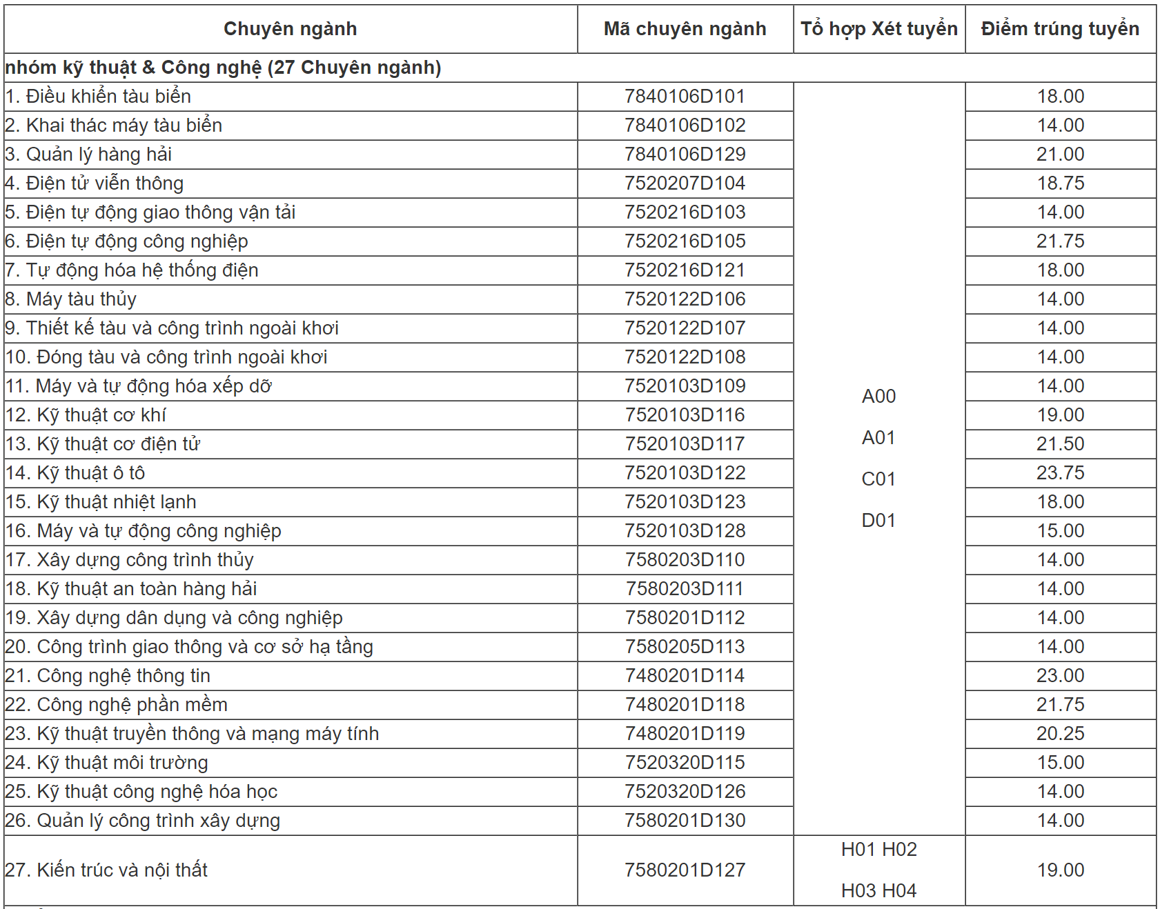 Trường Đại học Hàng hải Việt Nam thông báo điểm trúng tuyển hệ đại học chính quy đợt I năm 2020 theo kết quả thi tốt nghiệp THPT.