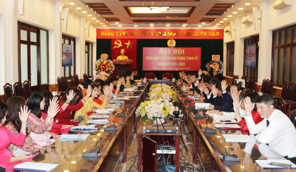 Chiều 28/3, Công đoàn cơ quan Văn phòng Thành ủy tổ chức Đại hội Công đoàn nhằm tổng kết phong trào cán bộ, công chức, lao động và hoạt động công đoàn nhiệm kỳ 2017-2022 và quyết định mục tiêu, phương hướng, nhiệm vụ hoạt động công đoàn nhiệm kỳ 2023-2028.