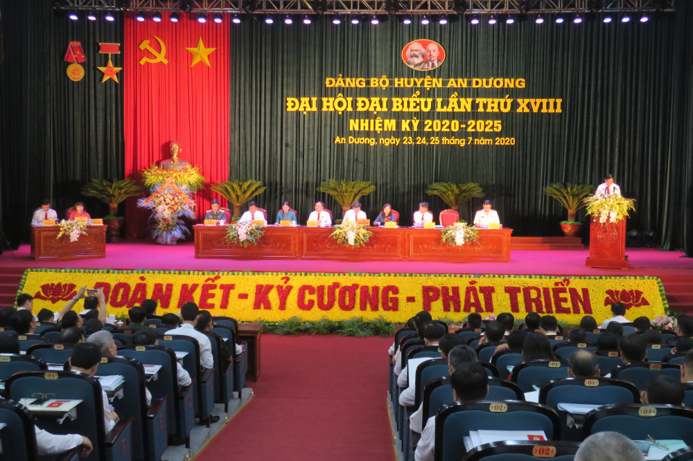Chiều 23/7, tại Nhà văn hóa trung tâm huyện An Dương, Đại hội đại biểu Đảng bộ huyện lần thứ XVIII, nhiệm kỳ 2020 – 2025 họp phiên trù bị với sự tham dự của 224 đại biểu chính thức đại diện cho hơn 7.740 đảng viên thuộc 69 chi, đảng bộ cơ sở trong toàn Đảng bộ huyện. Đại hội diễn ra trong 3 ngày 23,24 và 25/7.