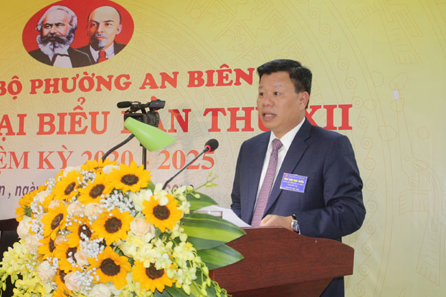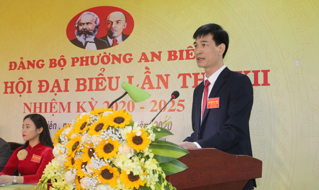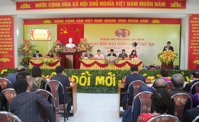 Đại hội đại biểu Đảng bộ phường khóa XII xây dựng mục tiêu, phương hướng, nhiệm vụ nhiệm kỳ 2020 – 2025 với chủ đề “Nâng cao năng lực lãnh đạo và sức chiến đấu của Đảng bộ; giữ vững Đảng bộ trong sạch vững mạnh; đoàn kết, dân chủ, đổi mới, phát huy sức mạnh của hệ thống chính trị; phấn đấu đến năm 2025 xây dựng phường An Biên trở thành đô thị văn minh, hiện đại”. Đại hội xây dựng một số chỉ tiêu chủ yếu thực hiện trong nhiệm kỳ 2020 – 2025: Thu ngân sách phường đạt 100% chỉ tiêu pháp lệnh hàng năm, phấn đấu tăng từ 5%/năm trở lên; phấn đấu đạt 70% tiêu chí quy định cho tiêu chuẩn đô thị loại I; tập trung thực hiện có nền nếp công tác quản lý đô thị; xây dựng các tuyến ngõ dọc theo đường sắt đảm bảo tiêu chí sáng, xanh, sạch, đẹp, an toàn và văn minh. Giới thiệu việc làm cho trên 450 lượt người/năm; duy trì không còn hộ gia đình nghèo trên địa bàn phường; tỷ lệ nhân dân tham gia BHYT đạt trên 98% vào năm 2025; xây dựng Đảng bộ phường trong sạch vững mạnh, hàng năm có 90% trở lên số chi bộ trực thuộc đạt tiêu chuẩn trong sạch vững mạnh; kết nạp trên 50 đảng viên mới; thành lập 1 chi bộ theo Nghị quyết 28-NQ/TU của Ban Thường vụ Thành ủy… Đồng thời đưa ra 7 nhóm nhiệm vụ, giải pháp để thực hiện.