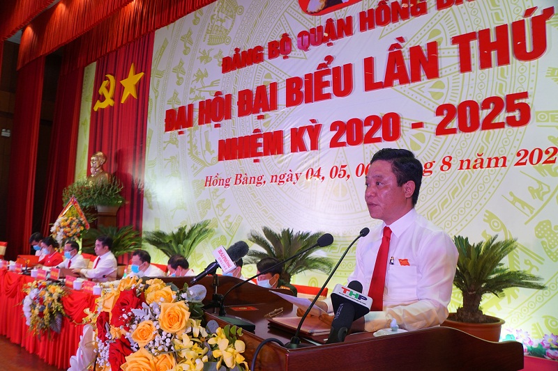 Phát biểu chỉ đạo tại Đại hội, thay mặt Thành ủy, đồng chí Lê Văn Thành – Bí thư Thành ủy, Chủ tịch HĐND thành phố nhiệt liệt biểu dương những thành tích to lớn mà quân và dân quận Hồng Bàng đã đạt được trong nhiệm kỳ 2015 – 2020. Báo cáo chính trị trình Đại hội đã xác định khá đầy đủ mục tiêu, nhiệm vụ, giải pháp chủ yếu để phát triển quận Hồng Bàng trong nhiệm kỳ tới, đặc biệt đã bám sát các mục tiêu trong Nghị quyết số 45 của Bộ Chính trị và Chương trình hành động số 76 của Ban Thường vụ Thành ủy. Bí thư thành ủy lưu ý quận Hồng Bàng thực hiện nhất quán quan điểm xây dựng, phát triển quận quận Hồng Bàng trở thành trung tâm thương mại, dịch vụ, du lịch của thành phố. Để đạt được mục tiêu đó, Đảng bộ, chính quyền quận phải tập trung tổ chức thực hiện tốt các chủ trương chỉ đạo của thành phố về phát triển kinh tế xã hội, đồng thời phải có các biện pháp để tiếp tục nâng cấp, hiện đại hóa hạ tầng kinh tế xã hội, cải thiện mạnh mẽ môi trường đầu tư kinh doanh, khơi thông các nguồn lực xã hội để đầu tư phát triển các trung tâm thương mại, du lịch, dịch vụ hiện đại, xứng tầm.