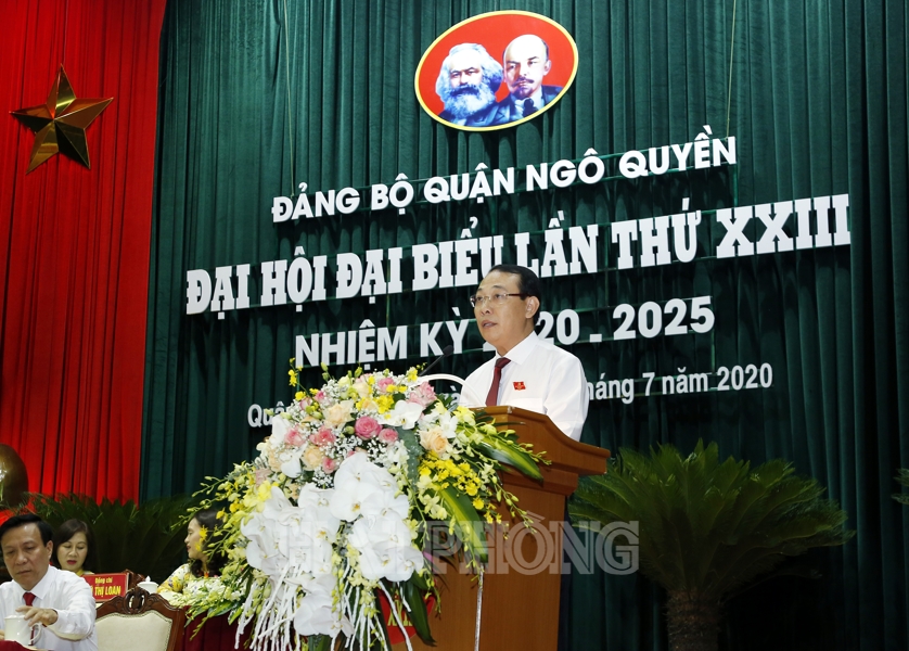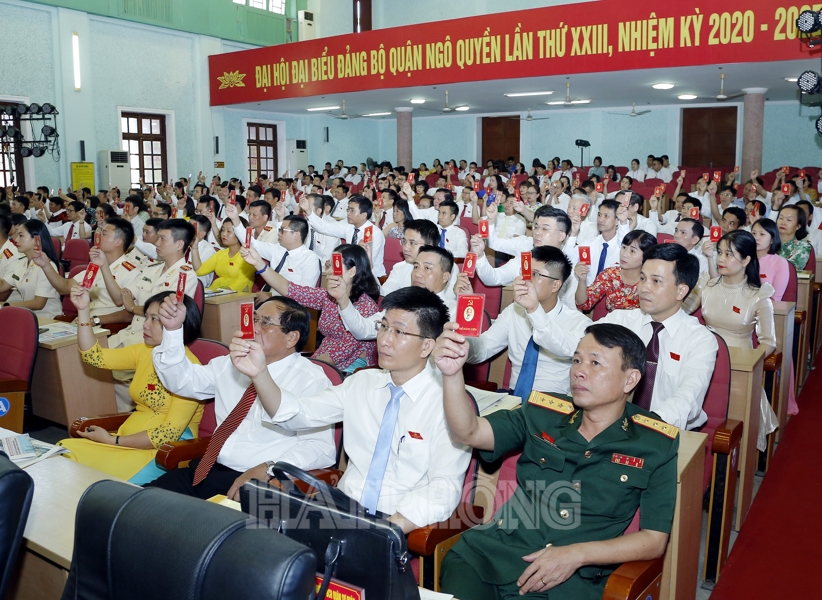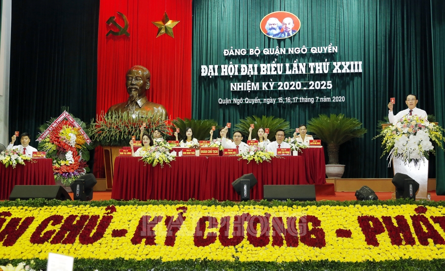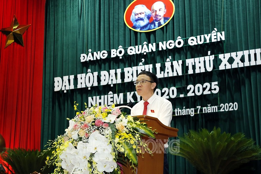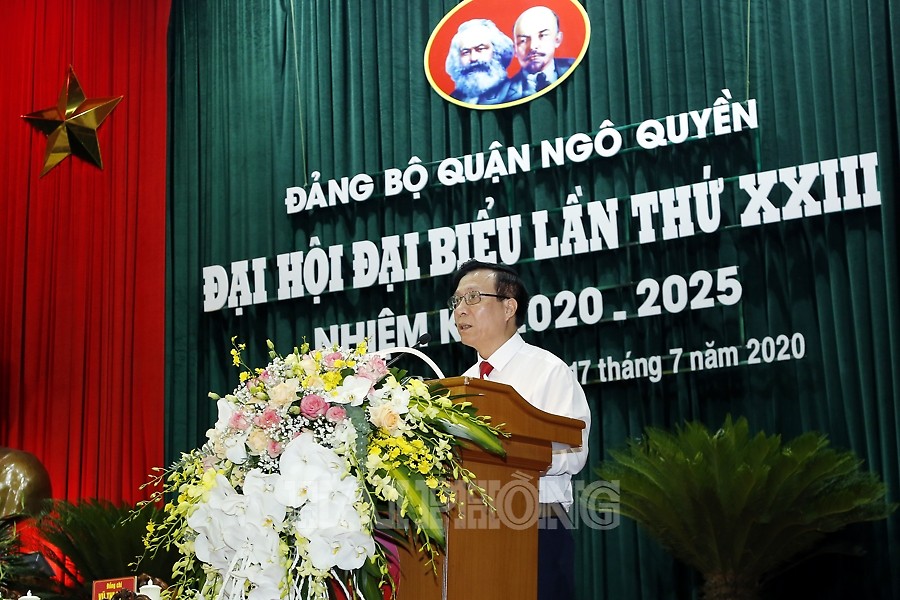 Chiều 15-7, tại hội trường Trường Chính trị Tô Hiệu, Đai hội đại biểu Đảng bộ quận Ngô Quyền lần thứ 23, nhiệm kỳ 2020÷2025 tiến hành phiên trù bị với sự tham gia của 192 đại biểu chính thức, đại diện gần 12.000 đảng viên thuộc 88 chi, Đảng bộ cơ sở trong toàn Đảng bộ quận. Đồng chí Đào Khánh Hà, Ủy viên Ban Thường vụ, Trưởng ban Tuyên giáo Thành ủy dự.