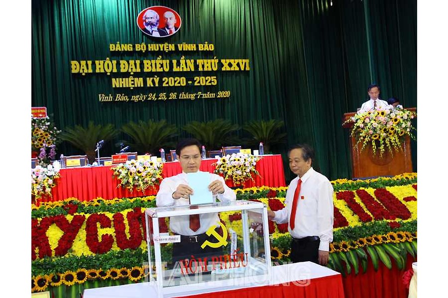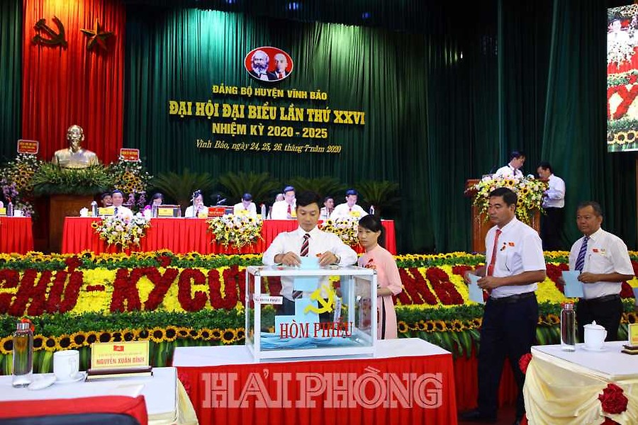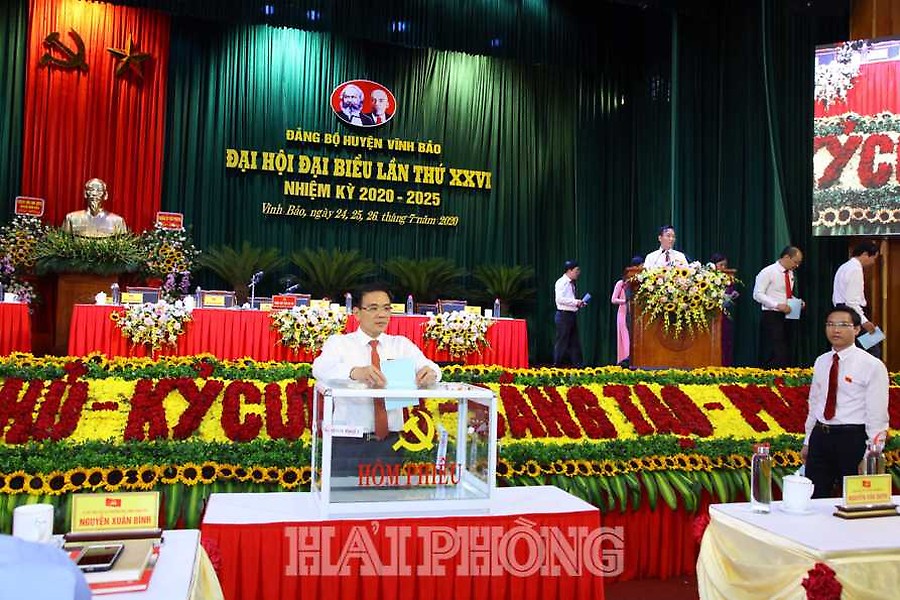 Đồng chí Phạm Quốc Ka, Bí thư Huyện ủy Vĩnh Bảo điều hành nội dung bầu Đoàn đại biểu dự Đại hội 16 Đảng bộ thành phố. Đại hội bầu 21 đại biểu chính thức, 1 đại biểu dự khuyết dự Đại hội 16 Đảng bộ thành phố. Đại hội tiến hành tổng hợp ý kiến tham gia dự thảo các văn kiện Đại hội 13 của Đảng; dự thảo Báo cáo Chính trị trình Đại hội 16 Đảng bộ thành phố; tổng hợp ý kiến của đại biểu tham gia dự thảo Nghị quyết và dự thảo Chương trình hành động Đại hội Đảng bộ huyện lần thứ 26, nhiệm kỳ 2020÷2025.