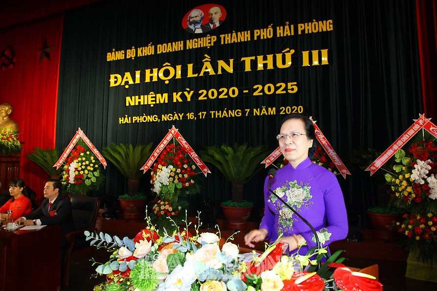 Đồng chí Phó bí thư Thường trực Thành ủy Nguyễn Thị Nghĩa nêu rõ: Nhiệm kỳ 2020÷2025, đứng trước thuận lợi, cơ hội có được từ xu hướng phục hồi của nền kinh tế thế giới; các hiệp định thương mại tự do thế hệ mới tác động trực tiếp, tạo điều kiện để thành phố Hải Phòng đẩy mạnh thu hút đầu tư, phát triển; hệ thống cơ sở hạ tầng được chú trọng đầu tư từng bước đồng bộ, hiện đại. Đặc biệt, ngày 24-1-2019, Bộ Chính trị ban hành Nghị quyết số 45 về “Xây dựng và phát triển thành phố Hải Phòng đến năm 2030, tầm nhìn đến năm 2045” với nhiều chỉ tiêu, nhiệm vụ quan trọng mở ra vận hội mới trong phát triển thành phố trong thời gian tới. Bám sát Nghị quyết 45, Dự thảo Báo cáo chính trị trình Đại hội Đảng bộ thành phố lần thứ 16 xác định mục tiêu, chỉ tiêu cho nhiệm kỳ 2020÷2025 với yêu cầu phát triển rất cao; Hải Phòng cơ bản hoàn thành sự nghiệp công nghiệp hóa, hiện đại hóa vào năm 2025. Vì vậy, mục tiêu, nhiệm vụ của Đảng bộ Khối Doanh nghiệp trong nhiệm kỳ tới phải đặt trong yêu cầu góp phần thực hiện thành công mục tiêu thành phố đề ra.