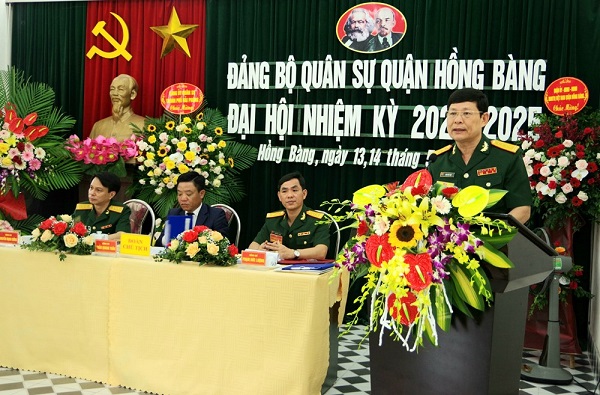 Đại hội đã nghe báo cáo kiểm điểm đánh giá thực hiện Nghị quyết Đại hội đại biểu Đảng bộ Quân sự quận Hồng Bàng nhiệm kỳ 2015-2020 và phương hướng, nhiệm vụ trong nhiệm kỳ 2020-2025.