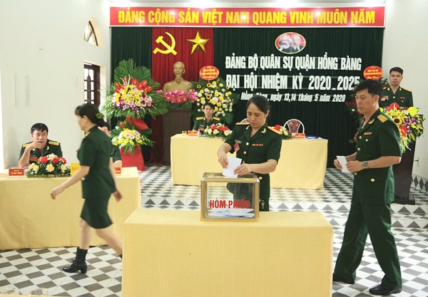 Nhiệm kỳ qua, Đảng bộ, lực lượng vũ trang (LLVT) quận luôn phát huy tinh thần đoàn kết sáng tạo, khắc phục khó khăn, phấn đấu vươn lên, hoàn thành và vượt các chỉ tiêu, nhiệm vụ nghị quyết Đại hội đảng bộ nhiệm kỳ 2015-2020 đã đề ra. Theo đó, Đảng ủy Quân sự quận Hồng Bàng đã làm tốt chức năng tham mưu cho cấp ủy, chính quyền địa phương lãnh đạo, chỉ đạo hoàn thành toàn diện công tác quân sự – quốc phòng địa phương; trong đó nhiều nhiệm vụ hoàn thành tốt, được các cấp biểu dương, khen thưởng như: công tác xây dựng nền quốc phòng toàn dân, xây dựng khu vực phòng thủ, công tác tuyển quân, giải quyết việc làm cho quân nhân sau xuất ngũ, từng bước đưa công tác quân sự, quốc phòng địa phương đi vào chiều sâu. Công tác xây dựng lực lượng, bồi dưỡng kiến thức quốc phòng an ninh, huấn luyện được thực hiện nghiêm túc, có hiệu quả.