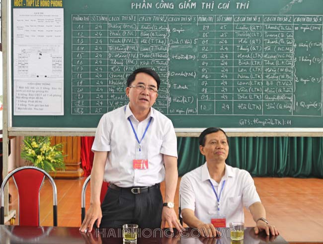 Phó Chủ tịch Lê Khắc Nam chỉ đạo tại Hội đồng thi Trường THPT Lê Hồng Phong