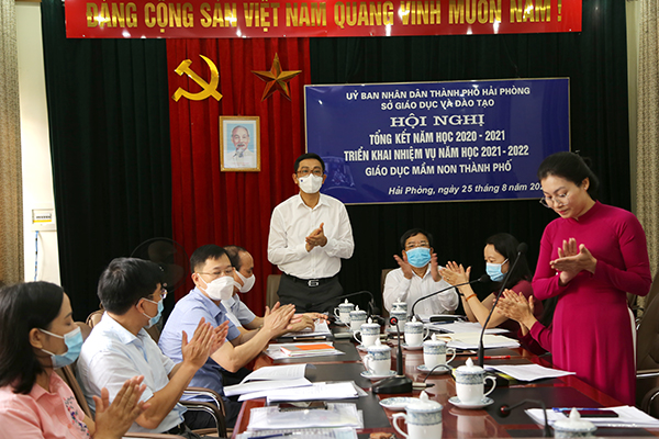 Phát biểu khai mạc hội nghị, đồng chí Bùi Văn Kiệm, Giám đốc Sở Giáo dục và Đào tạo khẳng định vị trí, vai trò của ngành giáo dục mầm non và đặc biệt nhấn mạnh đây là lớp học đầu tiên trong hệ thống giáo dục quốc dân, là bậc học có ý nghĩa đặt nền móng cho sự phát triển nhận thức, thể chất, tình cảm xã hội và tâm lý cho trẻ. Thành phố và ngành giáo dục trong nhiều năm qua đã có sự quan tâm đối với bậc học giáo dục mầm non. HĐND thành phố đã ban hành Nghị quyết hỗ trợ bậc học giáo dục mầm non. Đồng chí cũng chia sẻ những khó khăn của bậc học giáo dục mầm non do dịch bệnh COVID-19 trong năm học vừa qua. Đời sống của các cô giáo mầm non, đặc biệt là ở trường tư thục còn gặp nhiều khó khăn; sau dịch bệnh, thiếu giáo viên mầm non ở trường tư thực là khả năng hiện hữu đòi hỏi các cấp quản lý giáo dục đưa ra nhiều biện pháp, quyết sách để giải quyết nhằm đảm bảo an toàn tuyệt đối về thể chất và tinh thần cho trẻ em mầm non trong năm học 2021- 2022.